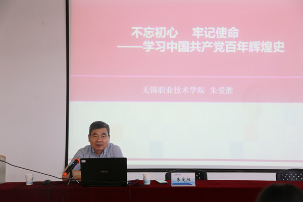 6月29日,校党委书记朱爱胜为机械技术学院和财经学院的全体党员教师讲授党史学习专题党课。朱爱胜书记以《不忘初心 牢记使命——学习中国共产党百年辉煌史》为题,从“为什么学习中共党史”“中共党史的基本脉络”和“中共党史的根本经验与规律”三个方面深入浅出地向全体党员教师阐述了中国共产党如何在百年波澜壮阔的历史进程中,由小变大、由弱变强,团结和带领中国人民夺取革命、建设、改革一个又一个伟大胜利,创造了人类社会发展史上一个又一个奇迹。