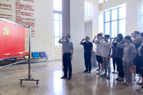 在有“苏南小延安”之称的太华山新四军和苏南抗日根据地纪念馆,全体师生怀着崇敬的心情,聆听了江苏省新四军历史研究会理事、宜兴市新四军历史研究会太华分会会长、宜兴市太华山新四军和苏南抗日根据地纪念馆负责人、我校关工委特聘讲师汤永伟讲述的抗战时期我党我军的光荣历史和艰辛历程,全体师生党员还在纪念馆的革命先辈群像前重温了入党誓词。