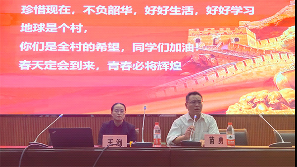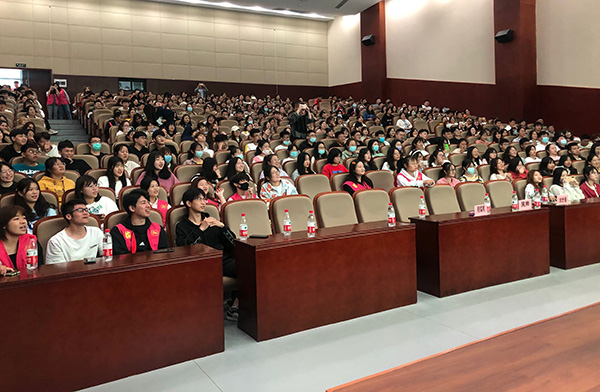 管理学院党总支书记苗勇主持报告会,辅导员、班主任和全体新生近500人一起聆听了报告。
