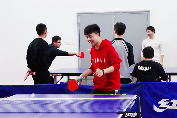 本次活动从筹办开始就得到了众多师生的支持。同学们通过自愿报名的方式,随机分组,共产生卓尔不群队、乒乓旋风队等八支参赛队伍。分院徐锋、史荧中、华拓、王莹、何青松和郁皓升等老师组成教师队参与比赛。比赛共分为两个阶段,第一阶段为循环赛,采用三对三进行团体对抗,根据单场胜利次数决定小组排名。第二阶段为淘汰赛,出线的四支队伍各加入一位老师,进行一场双打和两场单打的比赛,其中老师必选参加双打。