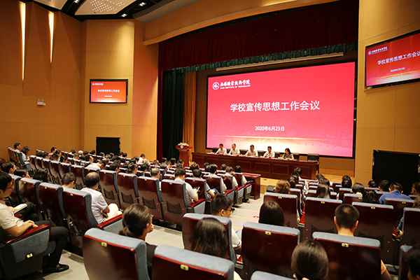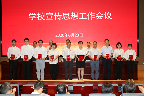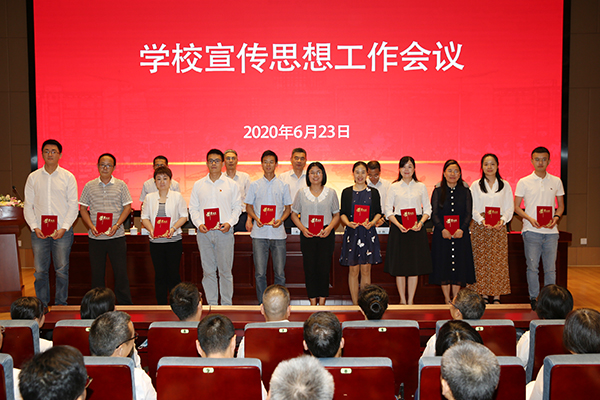 6月23日下午,学校在综合楼报告厅召开宣传思想工作会议,校领导朱爱胜、龚方红、周桂瑾、杨雪琴、徐浪,全体中层正职干部、专职副书记、辅导员、思政课教师和受表彰人员参加了会议。