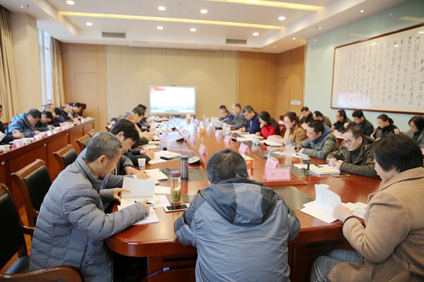 11月29日下午,我校在综合楼F201会议室召开党委理论学习中心组(扩大)集中学习会议,认真学习贯彻党的十九届四中全会精神。会议由校党委副书记周桂瑾主持,校党委理论学习中心组全体成员、中层正职(含主持工作的副职)党员领导干部参加了会议。