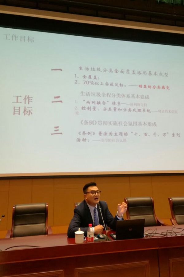 叶飞先生向同学们介绍了当前推行垃圾分类工作的背景,分析了垃圾分类工作在践行绿色发展理念、建设美丽中国中的理论和现实意义。先后介绍了上海、宁波、厦门、深圳等城市垃圾分类工作推行情况,介绍了当前垃圾分类工作经验,展望了垃圾分类工作今后需要继续努力改进的方向。在讲座过程中,叶飞先生还结合自己工作实际,分享了自己在垃圾分类工作中的经验,并普及了垃圾分类的一些实用知识。
