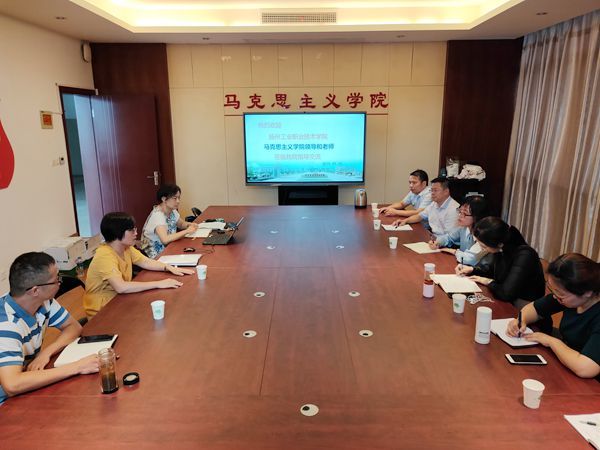 扬州工业职业技术学院马克思主义学院为江苏省示范马克思主义学院培育点建设单位。在座谈过程中,双方重点交流了做好培育点工作、争创示范马克思主义学院的经验和做法,还就思政课师资队伍建设、实践教学、在线课程建设等进行了讨论。