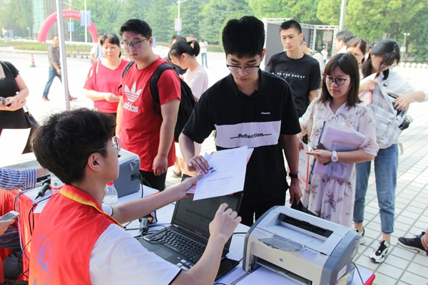 9月的校园,丹桂飘香、天空澄明。中央大道的新生接待点热闹非凡。我校今年共录取来自省内和吉林、山东、安徽、四川、广东、云南、新疆、西藏等23个省、自治区的4761名新生。