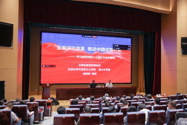 918日,学校举办党的二十届三中全会精神宣讲报告会暨党委理论学习中心组(扩大)学习会,市委宣讲团成员、江南大学二级教授、博士生导师刘焕明受邀作宣讲报告。校党委书记龚方红主持报告会并讲话。