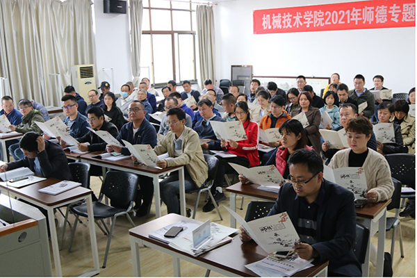 本次师德专题教育大会,是机械学院师德专题教育系列活动的重要组成部分,学院将以此次会议为契机,进一步突出明师德要求、强“四史”教育、学师德楷模、遵师德规范、守师德底线,注重融入日常、抓在经常的总体要求,通过学习研讨、专题讲座、集体宣誓等活动,增强分院教师主动对标新时代新形势新要求的意识,深刻认识师德师风建设的重要性,牢记立德树人根本任务,以赤诚之心、奉献之心、仁爱之心践行“为党育人、为国育才”的初心使命。