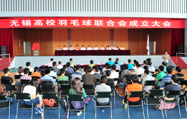 成立大会由无锡市广播电视大学党委副书记王仁刚主持,会议审议并通过了《无锡高校羽毛球联合会章程》和首届领导机构组成人员名单。无锡市教育局副局长符菊成、体育局副局长汪克强为市高羽联揭牌,并向名誉主席、名誉副主席颁发聘书。我校当选联合会主任单位,龚方红校长当选为高羽联主席,副校长华坚、体育部副主任华宝元当选副主席。