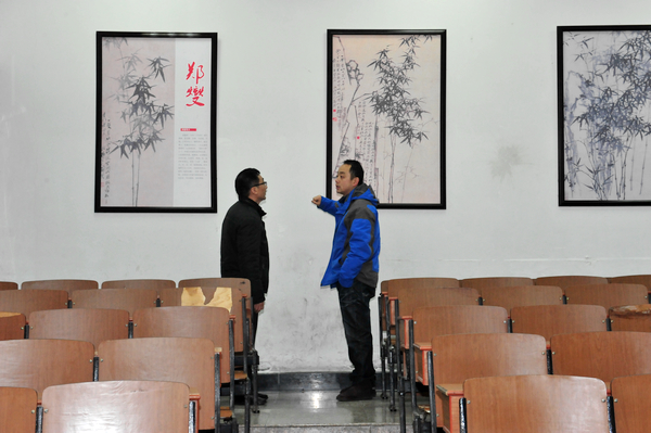 1月9日下午,校领导朱爱胜、龚方红、谈向群、顾京、周桂瑾,在党院办、公共艺术中心等部门人员的陪同下,对太湖校区公共教室教学区改造工程进行了检查和现场办公。
