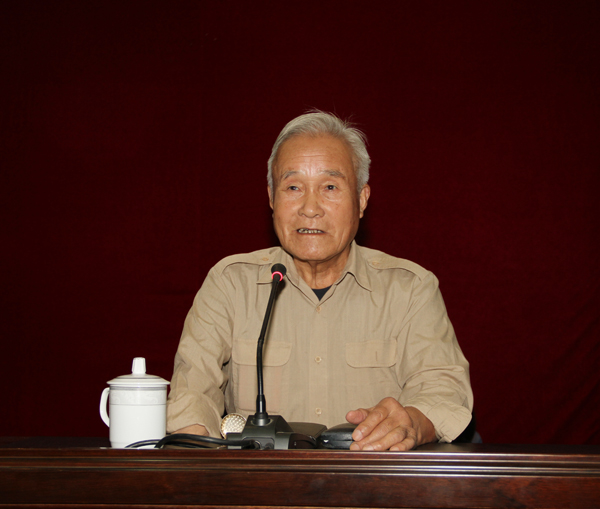 吴成同志满怀激情地以自己参加抗日战争、解放战争中的亲身经历为同学们讲述了没有共产党就没有新中国的深切感受以及今天幸福美好生活和学习环境得来的艰辛不易,特别强调了党的群众路线的重要性,他指出,共产党、毛主席因为有了人民群众的支持才取得胜利,国民党、蒋介石因为失去了群众的支持才导致失败。他还引用了抗美援朝的经典战列告诉大家,中国在逐渐的强大,作为中国人我们要感到自豪与骄傲。