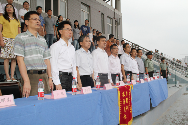 9月22日上午,我校4100多名2013级新生结束了为期2周的军训生活,汇报表演暨总结表彰大会在太湖校区田径场隆重举行。校领导朱爱胜、龚方红、华坚、周桂瑾,承担军训任务的人民解放军部队首长、各院系负责人及新生辅导员参加了大会。