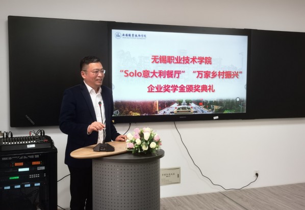 11月21日下午,“solo意大利餐厅”“万家乡村振兴”企业奖学金颁奖典礼在国际交流中心GJ308隆重举行。江苏梭罗餐饮管理有限公司首席侍酒师何皑、人力资源经理戴星泽,无锡万家田园生态农业有限公司总经理罗玉军,我校副校长储开峰,外语与旅游学院相关负责人、师生代表等参加活动。