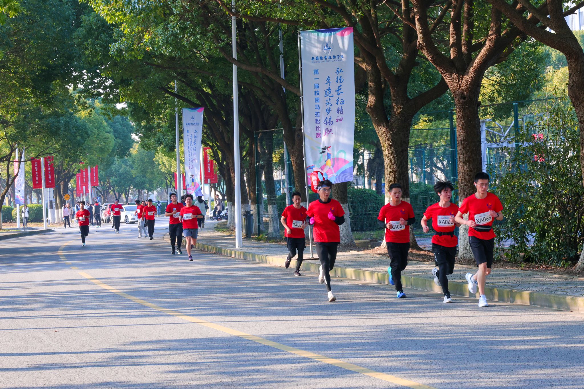 本次比赛以“弘扬长征精神,奔跑筑梦锡职”为主题,吸引了全校师生的广泛关注与参与。随着校领导周桂瑾、杨雪琴、强伟纲、储开峰、李衔一起鸣枪发令,马拉松比赛正式开跑。人潮瞬间开始流动,在校园内化为一条奔跑的激流,为冬日校园增添了活力和暖意。赛道内,选手们在承载无限希望的赛道上坚定目光奋力向前;赛道外,志愿者和观赛人群加油助威、暖心鼓励。比赛现场变成一道充满激情热血和人文关怀的独特风景线,促进了师生间、同学间的交流和沟通,让大家感受到了集体的力量和友谊的温暖。