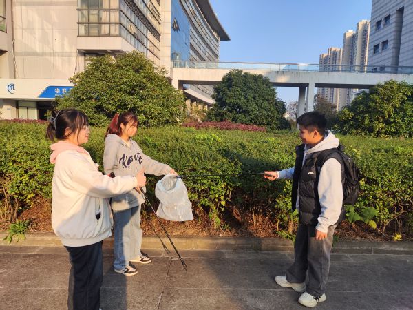回到学校,同学们不顾徒步的劳累,自发在学院教学楼附近的花草树木丛中捡拾纸片等,努力为维护校园卫生整洁贡献力量。