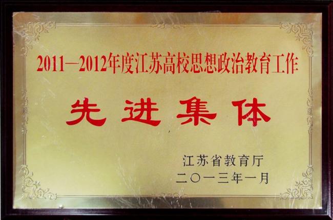 近日,2013年全省教育工作会议在南京召开。会议深入学习贯彻党的十八大、省委十二届四次全会和全国教育工作会议精神,回顾总结2012年全省教育工作,分析教育改革发展形势,研究部署2013年全省教育改革发展重点任务。 会上表彰了2011-2012年度江苏高校思想政治教育工作先进集体。我校因工作成绩突出再次荣获“江苏高校思想政治教育工作先进集体”荣誉称号。