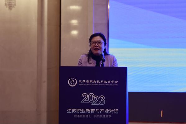 为深入学习习近平新时代中国特色社会主义思想,贯彻落实《教育部办公厅关于加快推进现代职业教育体系建设改革重点任务的通知》,深化职普融通、产教融合、科教融汇,推动职业教育高质量发展。11月13日,由江苏省职业技术教育学会主办,江苏省职业技术教育学会产教融合工作委员会、中国职业技术教育学会智能轨道交通专业委员会、江苏省机械职业教育行业指导委员会和常州机电职业技术学院联合承办的2023年江苏职业教育与产业对话活动在常州顺利举行。来自职教领域专家学者、全省各中高职校领导、教师和行业企业代表等共计150余人参加交流与研讨活动,我校副校长吴慧媛应邀参加。