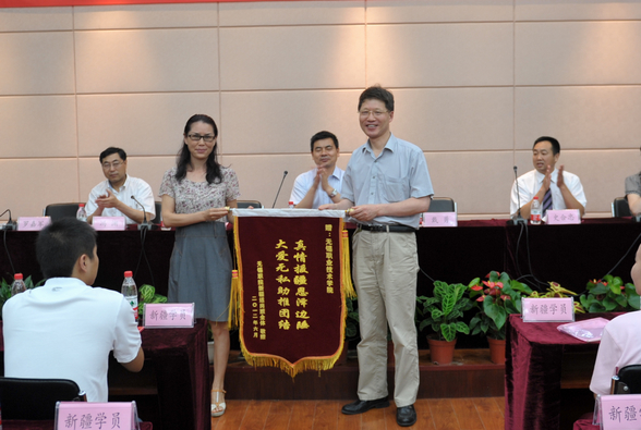 随后,培训班总领队江莉红向我校赠送了锦旗,学员代表还向在主席台就坐的领导们送上了富有民族特色的小花帽。朱爱胜书记在讲话中祝贺53名学员顺利结业,当前中央提出中部、东部、西部地区要协调发展,西部地区正处于新的重要战略机遇期,需要一大批优秀的建设者和领军人才,希望培训班学员们再次回到家乡时,能够迅速成长为建设家乡、管理社会的生力军。(魏艳 文/ 房磊 摄)