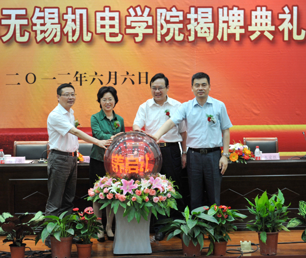 随后,江苏大学田立新副校长和我校朱爱胜书记共同为江苏大学无锡机电学院揭牌。华博雅副市长、徐子敏处长、范明书记和朱爱胜书记共同按下启动电钮,当“高职本科联合培养启动”字样出现时,现场响起了热烈的掌声。