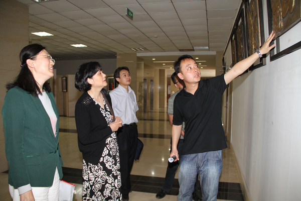 领导一行实地察看了我校图书馆一楼的师生艺术作品展后,顾京副校长向刘扬生副处长简要汇报了乐鱼(中国)、学校面临的形势、十二五规划总体目标和公共艺术教育四个方面的内容,数字艺术系助理孟剑飞详细阐述了近三年我校公共艺术课程建设情况,团委书记徐悦介绍了大学生社团开展活动的情况。