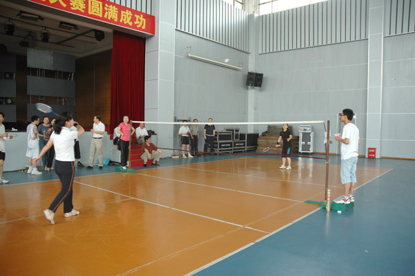 5月15日下午,我院教职工“五·四”羽毛球混合团体赛在体育馆二楼拉开帷幕,各党总支和直属党支部及专职团干部组织的17支队伍参加了比赛。比赛由院工会主办,院团委和院羽毛球协会承办,比赛采用抽签对决进行逐轮淘汰,经过三个多小时的角逐,控制技术学院一队通过四轮比赛夺得冠军,后勤党总支获得亚军,科技产业处直属党支部与外语系党总支并列揽获季军。(汤雪菲)