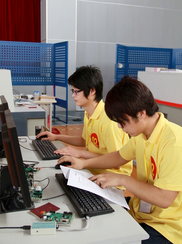 为全面提高人才培养质量,充分发挥各类竞赛在人才培养中的竞争、激励和导向作用,今年省教育厅、省财政厅进一步加大高职院校的大赛支持和组织力度,举办首届高等职业院校技能大赛。此次大赛于5月4日至9日在全省4个市、7所高校同时举行,来自全省59所高职院校的209个代表队、459名选手将参加物联网技术、机器人技术、电子产品设计、信息安全、汽车检测等13个项目的比赛。(魏艳 文/ 房磊 摄)