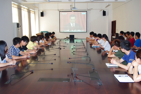 学习会上,团学干部们观看了中共中央总书记胡锦涛在5月4日纪念中国共产主义青年团成立90周年大会上发表重要讲话的视频录像。看完录像,同学们普遍感到深受鼓舞,精神振奋,纷纷表示要以纪念建团90周年为契机,将胡总书记讲话精神贯穿到学习和工作中去,用优异的成绩迎接党的十八大胜利召开。大家还围绕胡总书记对当代青年提出的五点殷切希望,展开了热烈的讨论。