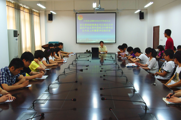 “共青团作为党领导的先进青年的群众组织,肩负着团结带领广大青年为党和人民事业而奋斗的光荣任务。胡锦涛总书记的重要讲话思想深刻、内涵丰富、情真意切,体现了党中央对共青团事业的重视。同时胡总书记的讲话对我们广大团务工作者既是一种鼓励,也是一种鞭策。”团委副书记谢欢表示,团委将继续秉承“党有号召、团有行动”的工作理念,在利用微博等新媒体技术的同时融入情感、时尚、艺术的元素加强对大学生的思想引领的同时,更加注重培养学生的道德情操、创新能力、社会实践等综合素质提升,凝练升华浓郁的校园爱心文化,努力组织好、引导好、服务好青年学子的成长成才,在建设“四个无锡”和江苏“两个率先”的进程中谱写青春华章。(团委)