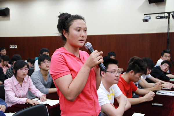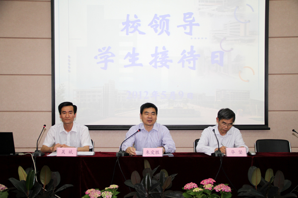 5月9日下午,国际交流中心二楼报告厅内座无虚席,来自各院系的70名学生代表与校领导及各职能部门负责人面对面交流,这是我校首次举行的校领导学生接待日,旨在加强信息沟通,解决同学们在学习、生活中的困难和问题。