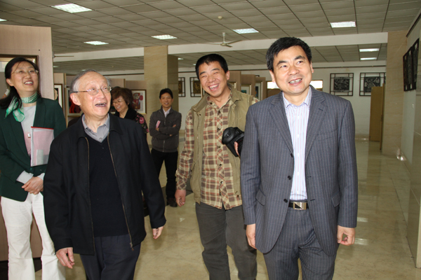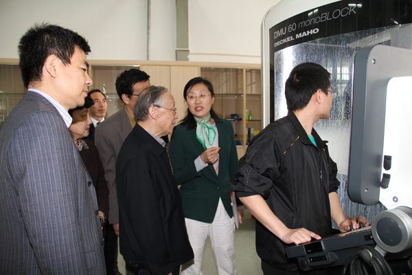 当天上午,杨叔子院士仔细观看了艺术设计系学生的绘画作品、校史陈列馆、机械技术学院数控创新班学生操纵五轴联动加工中心及试制的产品,并与部分教师进行了座谈。在实地考察中,他对我校留下了美好的印象,认为无锡职院欣欣向荣,大有可为。当校领导表示聘他为机械工程、素质教育客座教授时,杨叔子院士随即答应。