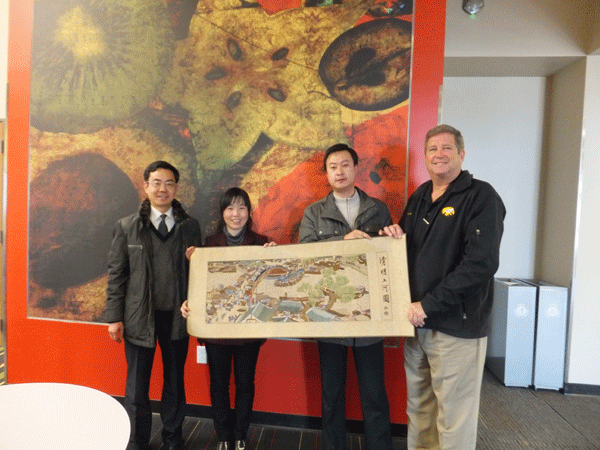 3月4日至3月7日,代表团与经济管理学院院长崔平、教师刘一鸣前往美国社区学院国际发展协会(CCID)总部所在的衣阿华州锡达拉皮兹市的柯克伍德社区学院(Kirkwood Community College)进行访问交流并达成了初步合作意向,2014年我校将与该校合作接收美国管理类专业学生来华短期修学项目。此外,代表团顺访了CCID总部,与CCID主席布朗女士以及项目经理Andrea共同探讨了美国学生来华修学项目。