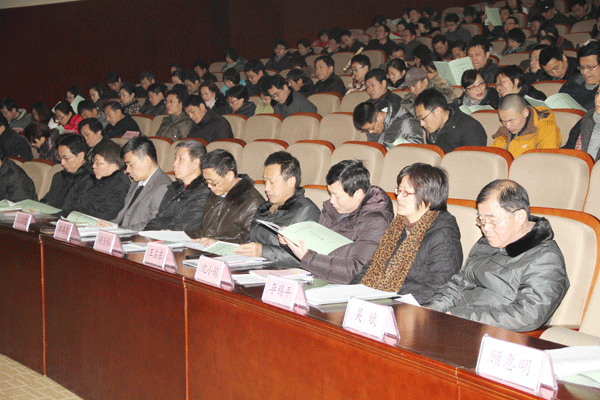 2月11日刚开学,我校第三届第三次教职工(工会)代表大会在太湖校区国际交流中心一楼报告厅隆重举行。校领导朱爱胜、戴勇、谈向群、华坚、曹建林、冯渊、顾京,113名教职工(工会)代表及100名列席代表聚集一堂,共商学院发展大计。大会由党委副书记谈向群主持。