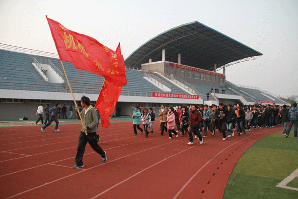在庄严的升国旗仪式后,副院长华坚发表了动员讲话,他指出我校多年来高度重视体育工作和同学们的身体健康,投入了大量人力物力改善体育设施,通过开展丰富多样的体育活动增强师生体质,并鼓励大家积极参加体育锻炼,健康工作、幸福生活。在学生代表宣读开展阳光体育活动倡议书后,顾京副院长来到跑道上举枪发令,拉开了长跑活动序幕,参加启动仪式的师生员工绕跑道一圈后开始了环校园长跑活动。