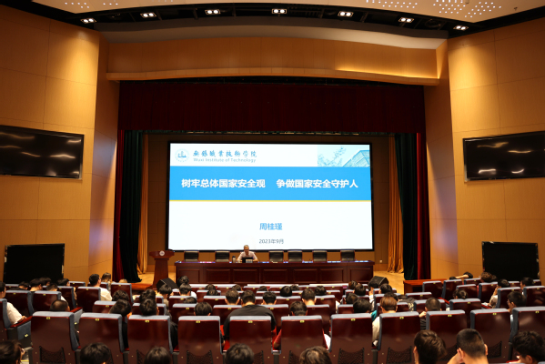 在国家网络安全宣传周活动之际,9月13日下午,周桂瑾校长在厚德楼报告厅以“树牢总体国家安全观,争做国家安全守护人 ”为题给机电一体化、工业机器人、智能网联汽车技术等专业的学生讲授了“开学第一堂思政大课”。