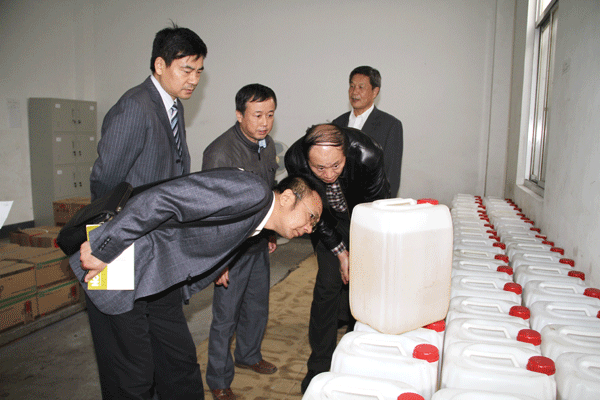 检查组一行在调味品仓库了解情况