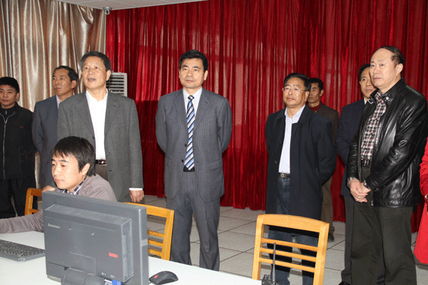 检查组一行在安防中心察看我校安防设施