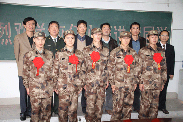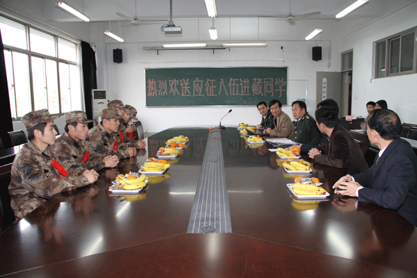 欢送会上,学生处、人武部负责人向即将入藏的5位同学表示祝贺,并希望他们克服困难,刻苦训练,努力成为合格军人,做出成绩为校争光。