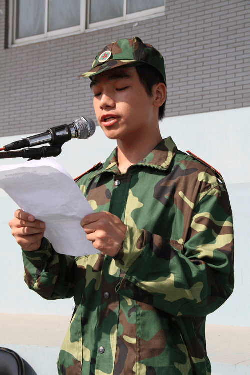随后,驻锡部队某部方参谋长和新生代表、机电21132班刘升分别发言。最后,军训办主任陶有远宣布了学生军训纪律。