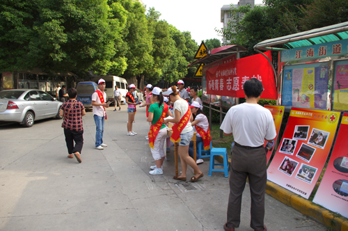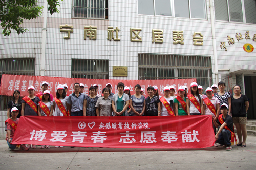 仪式结束之后,我院红十字会志愿者在宁南社区相关街道开展了志愿宣传活动,同学们对当地社区群众讲解宣传了无偿献血和日常急救的相关常识,受到社区居民的欢迎。(团委 马华伟)
