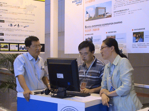 “资源云”体验展区展示包括数控技术专业在内的11个专业教学资源库建设项目。我院数控技术专业教学资源库经过3年多的建设,已经可以变化出多彩的应用方式,利用现代信息技术开发了形式多样的“海量”资源。数控专业体验展区的通栏标题“云卷云舒游资源云海 键起键落寻神秘宝藏”在展示大厅十分醒目。置身操作体验区中,与会嘉宾可以浏览,看看“云”到底有多少;可以驾驭,试试如何踏“云”而去;可以对比,想想“云”还能做什么;可以交流,找找是否还有更好的“云”。为了吸引与会嘉宾现场体验,合作企业西门子公司提出了体验抽奖的活动方式,提供了从西门子手表到苹果iPOD的丰盛奖品,并合作组织现场体验抽奖活动,与会嘉宾进入资源库真实体验后才能参与并填写调研资料,最终大奖苹果iPOD在闭幕式上由李进会长抽出。在整个展出期间,与会者十分踊跃。江苏省教育厅领导和专家亲自到展区了解展示情况,提出改进建议;数字化教学资源研制资深专家、西安交通大学副校长于德弘教授也到现场作了体验与指导。