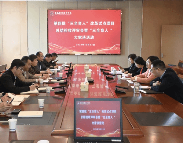 1023日下午,学校举办第四批“三全育人”改革试点项目总结验收评审会暨“三全育人”大家谈活动。第四批“三全育人”改革试点项目负责人、各二级学院党总支和相关职能部门负责人参加活动,校党委副书记杨雪琴出席并讲话。