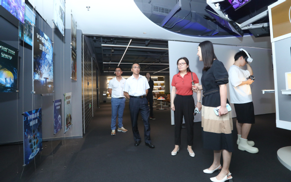 会后,与会成员参观了上海虚拟仿真实验教学工程技术研究中心,就虚拟现实关键技术应用、职业院校专业课程的内容开发、虚拟现实设备互动体验等内容进行考察学习。