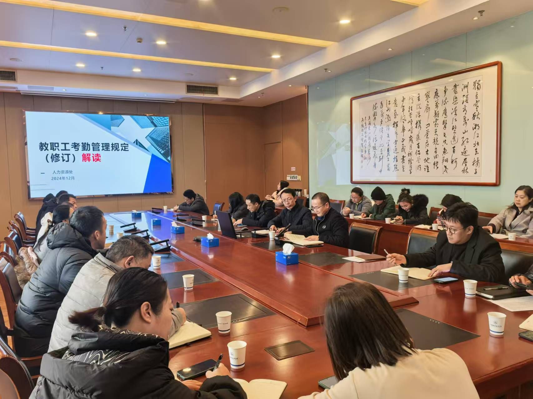 12月26日下午,人力资源处召开政策宣讲会,宣传普及学校新修订的考勤管理规定。人力资源处相关工作人员及各职能部门、教学单位办公室主任、人事专员等40余人参会。