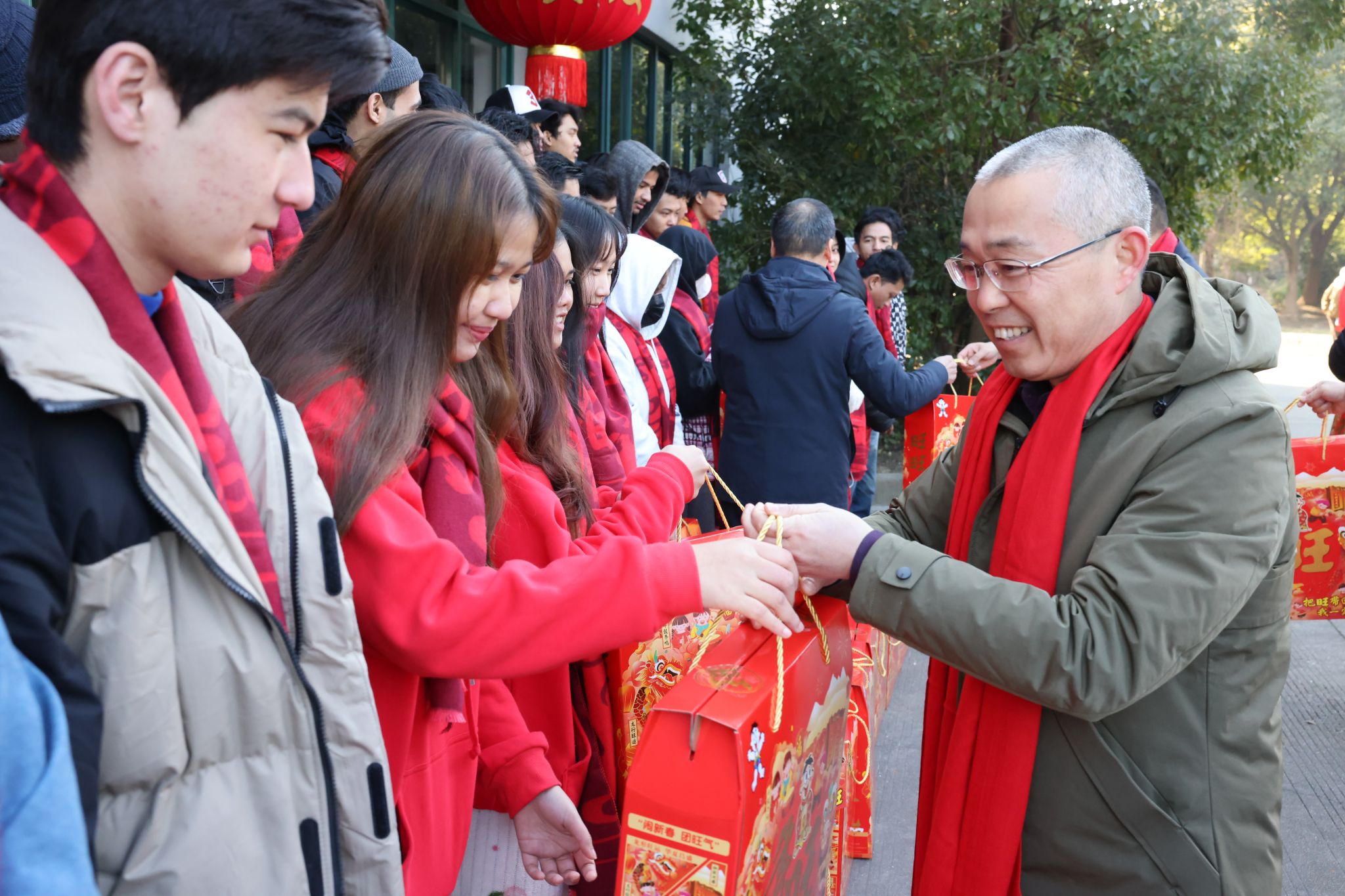 1月29日,农历乙巳蛇年春节当天,校党委书记龚方红、副校长强伟纲带领党校办、保卫处、学生处、后勤处、国交处等相关部门负责人,深入值班岗和学生宿舍,亲切慰问春节期间仍在岗值班的教职员工和留校学生,向他们致以崇高的敬意和新春的问候。