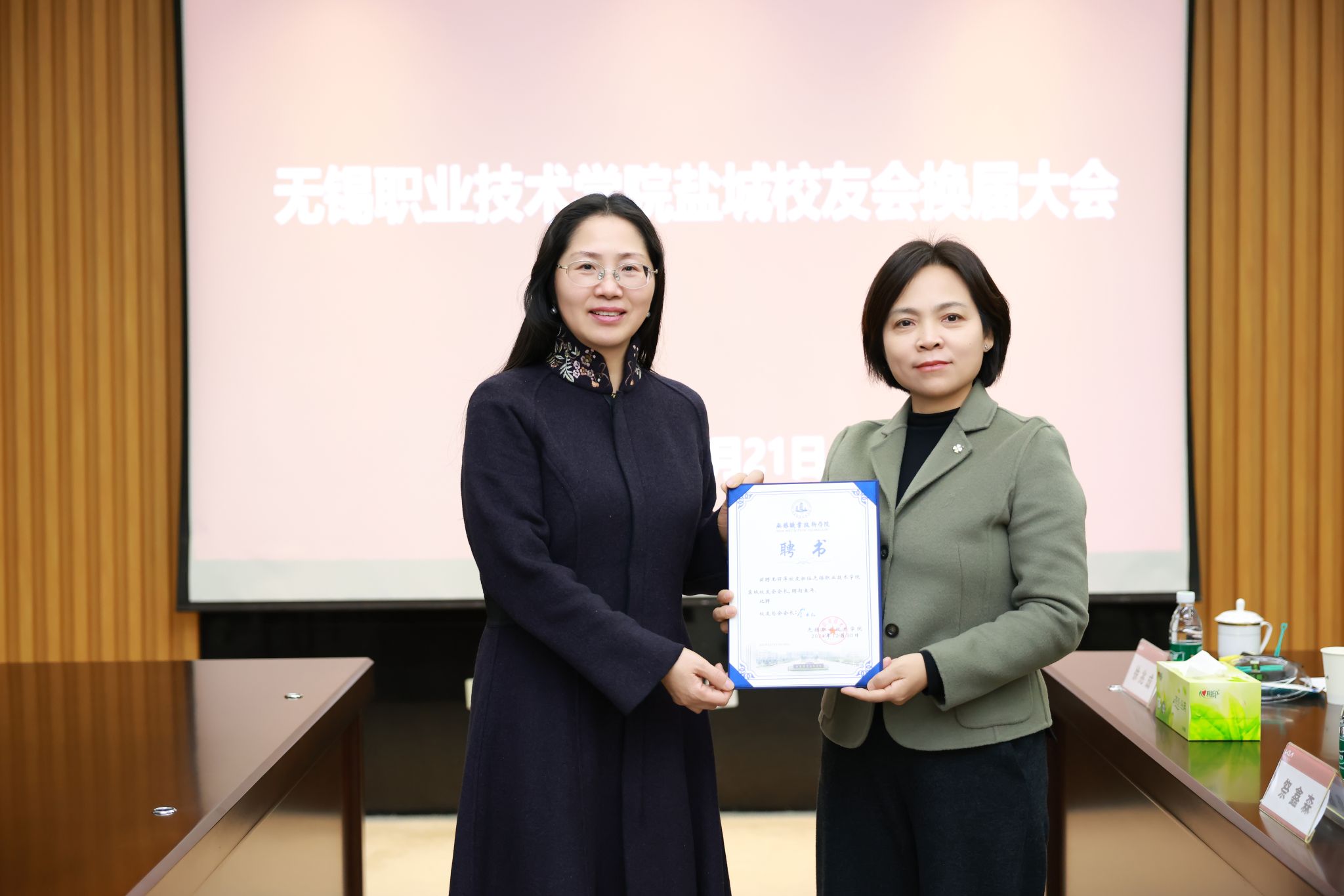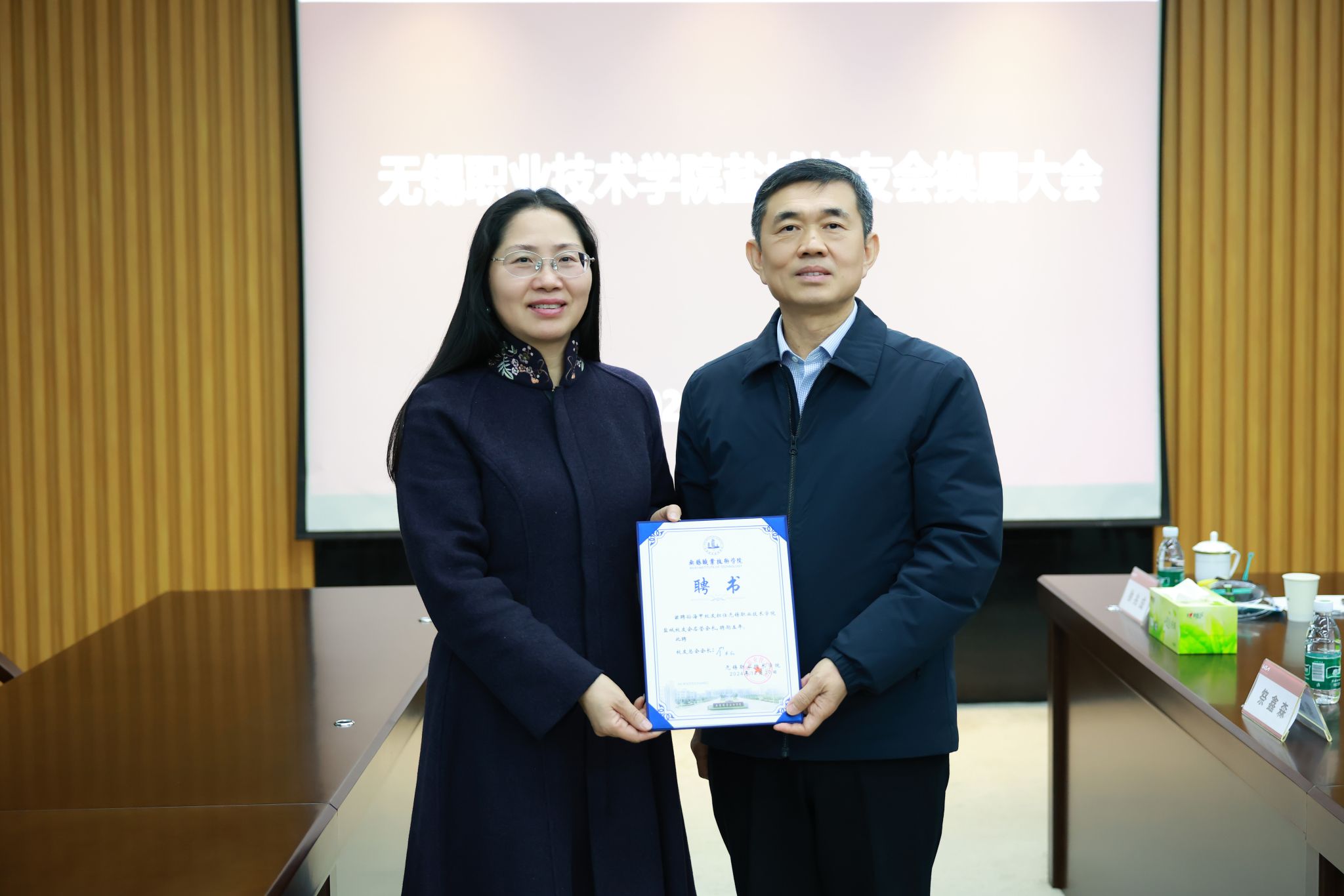 党委副书记杨雪琴为新任会长王丽萍颁发聘书
