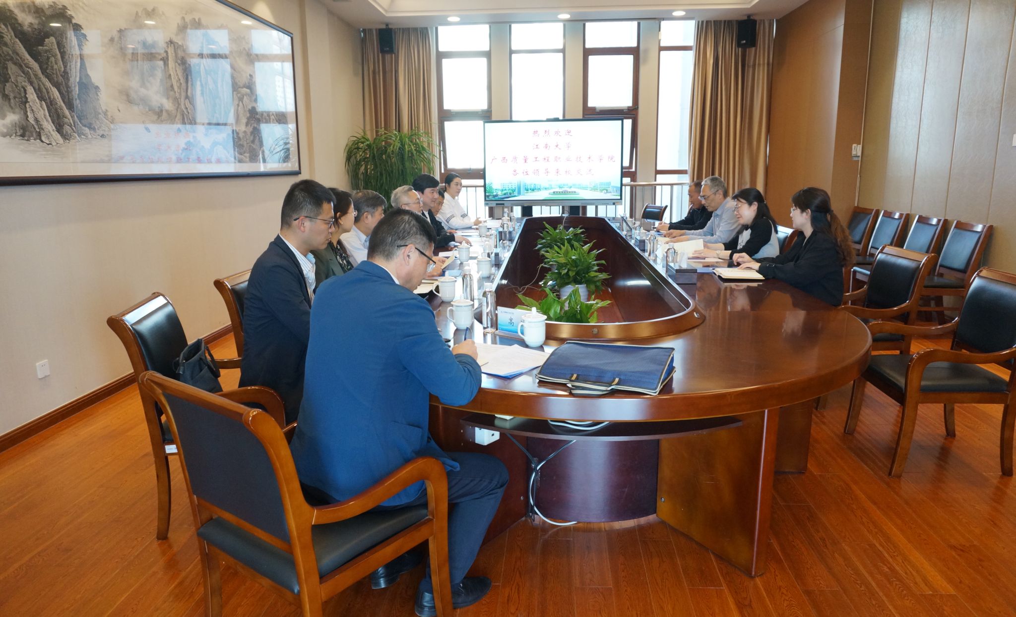 3月25日下午,广西质量工程职业技术学院党委书记凌紫毅一行来校调研,我校领导周桂瑾、吴慧媛,财经学院、管理学院相关负责人参与交流。