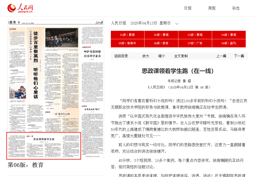 4月14日,《人民日报》以“思政课领着学生跑”报道我校思政课建设情况,彰显了我校思政课建设的示范性和辐射力。