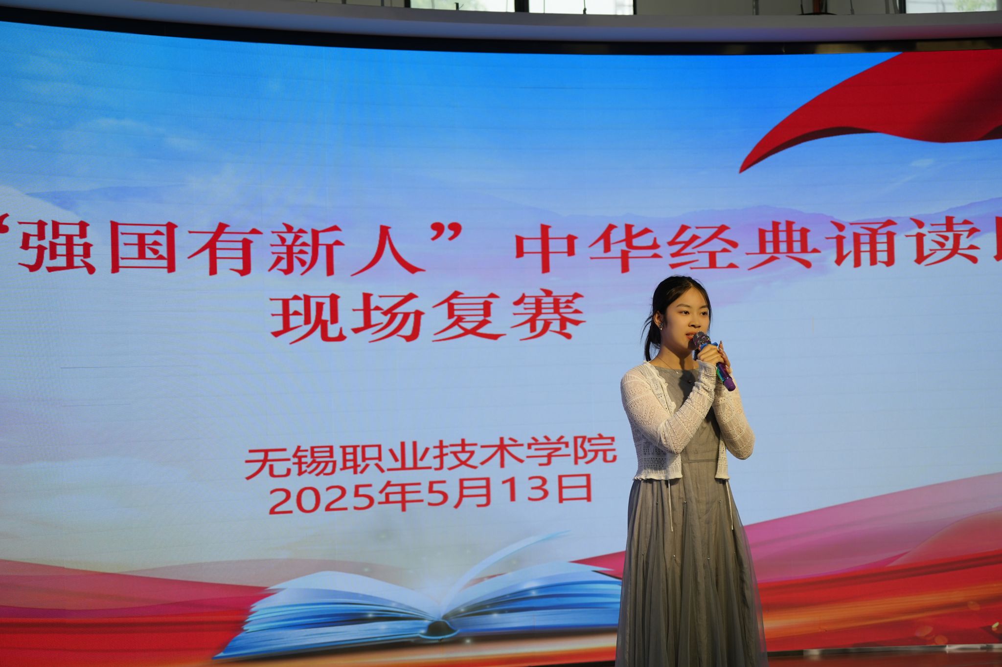 5月13日,由我校教务处、团委、学生处、基础课部主办,语言文字工作委员会承办的第七届“强国有新人”中华经典诵读比赛复赛在公共虚拟仿真实训中心举办,来自全校的17组选手在复赛现场进行了精彩展示,江南大学胡智丹教授、江苏信息职业技术学院江红教授等应邀担任评委。