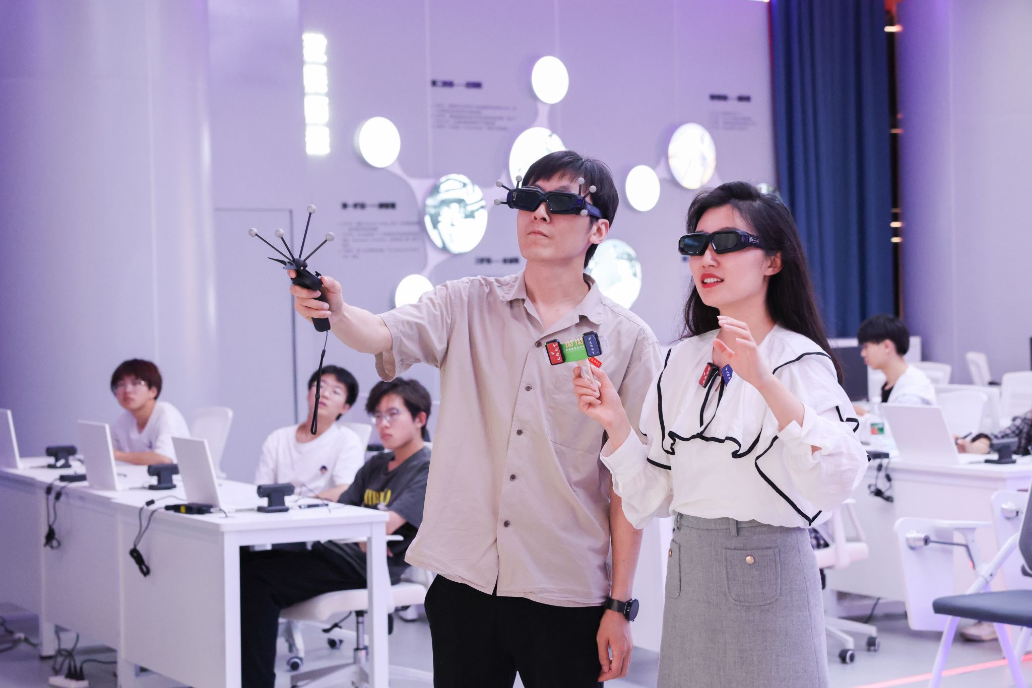 直播由机械工程学院专业教师万安然开场,向网友们分享了自己在锡职求学与回到母校任教的经历,讲述了学校办学条件和硬件环境的变化。随后,职教体验官、无锡教育电视台主持人葛嘉岑带领网友们先后走进增材制造工艺装备与先进应用实验室、难加工材料切削技术与装备研究实验室、公共虚拟仿真实训中心和基础课部物理实验室,了解3D打印、难加工材料在工业生产、航空航天以及日常生活中的应用,以及数字孪生、裸眼3D技术在专业教学中如何发挥作用。
