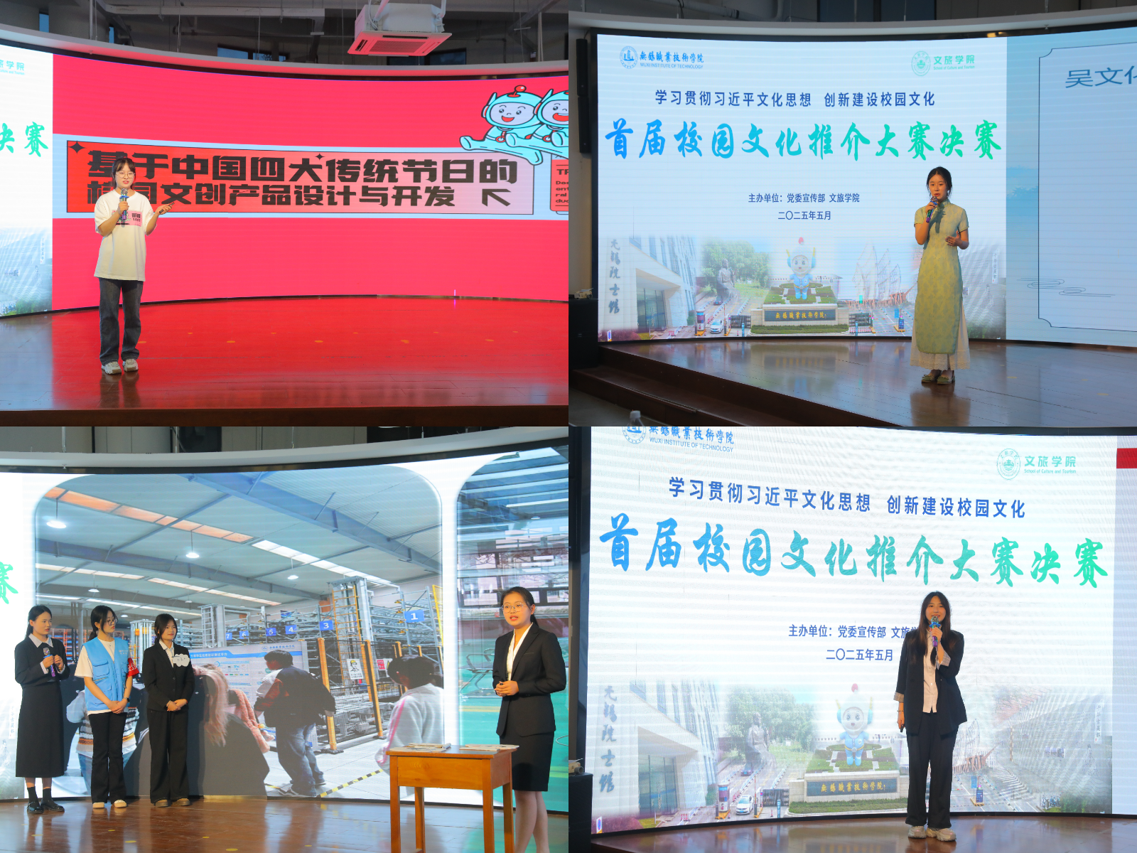 决赛分为普通组与专业组两个赛道。普通组的6组选手通过主题演讲形式介绍校园内的吴文化园、“锡锡”吉祥物等文化场馆和标识。专业组则充分发挥文旅专业优势,将学校文化场馆场地资源“串珠成线”,充分挖掘校史文化、工匠精神等元素,设计红色微研学旅行产品方案,并通过创意讲解等形式精彩展现。特别设置的中场互动环节将活动气氛推向高潮,主持人抛出多道涵盖校史校训、专业特色、育人文化的问题,现场观众踊跃抢答,气氛热烈。