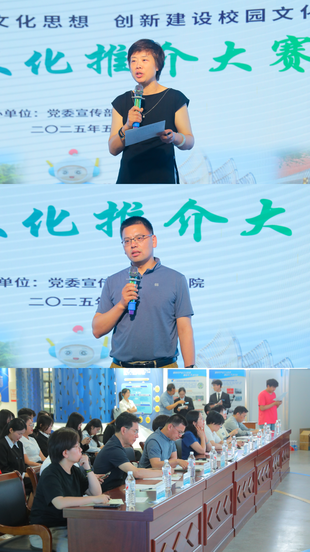 为深入贯彻落实习近平文化思想,创新建设校园文化,5月22日晚,由党委宣传部、文旅学院联合主办的首届校园文化推介大赛决赛在敏行楼路演大厅隆重举办,校党委副书记杨雪琴及党委宣传部、学生处、校团委、关工委、文旅学院、集成电路学院等部门负责人,及来自各学院的师生代表参加活动。